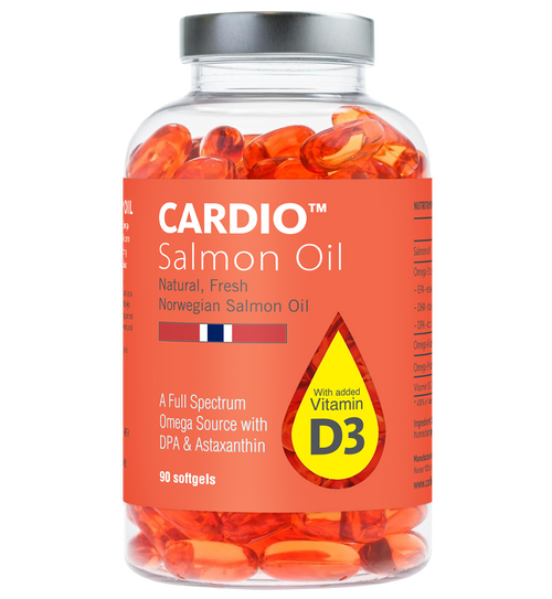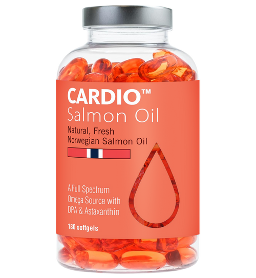 Most fish oils are blended from multiple low-cost fish sources and processed long after harvest. CARDIO™ uses single-ingredient salmon oil, produced within hours of harvest, and delivers a full spectrum of omegas naturally found in salmon including EPA, DHA and DPA plus naturally occurring antioxidants and vitamins. This results in a cleaner, more complete omega supplement.